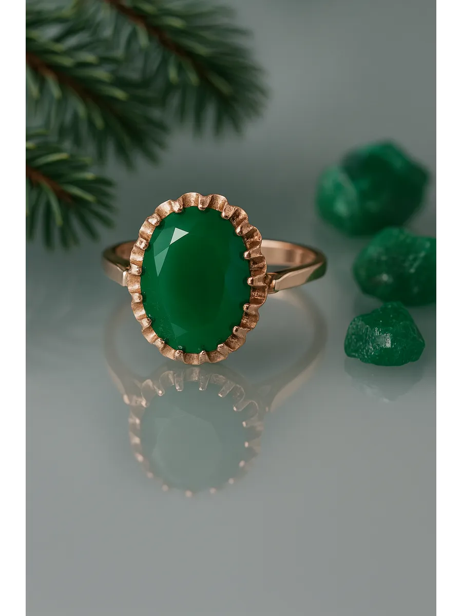 Кольцо бижутерное "Новогодний изумруд" — это изысканное украшение, созданное для того, чтобы подчеркнуть ваш стиль и настроение праздника. Изделие выполнено из качественного бижутерного сплава с эффектным золочением, которое добавляет ему особенного блеска и роскоши. В центре композиции расположена эффектная вставка из изумрудно-зеленого агата размером 10x14 мм, символизирующая новогоднюю свежесть и богатство природы. Это сочетание цвета и материала создает праздничное настроение и делает кольцо идеальным аксессуаром для любого зимнего торжества. Средний вес кольца составляет 3,0 грамма, что обеспечивает комфорт ношения и легкость в повседневном использовании.