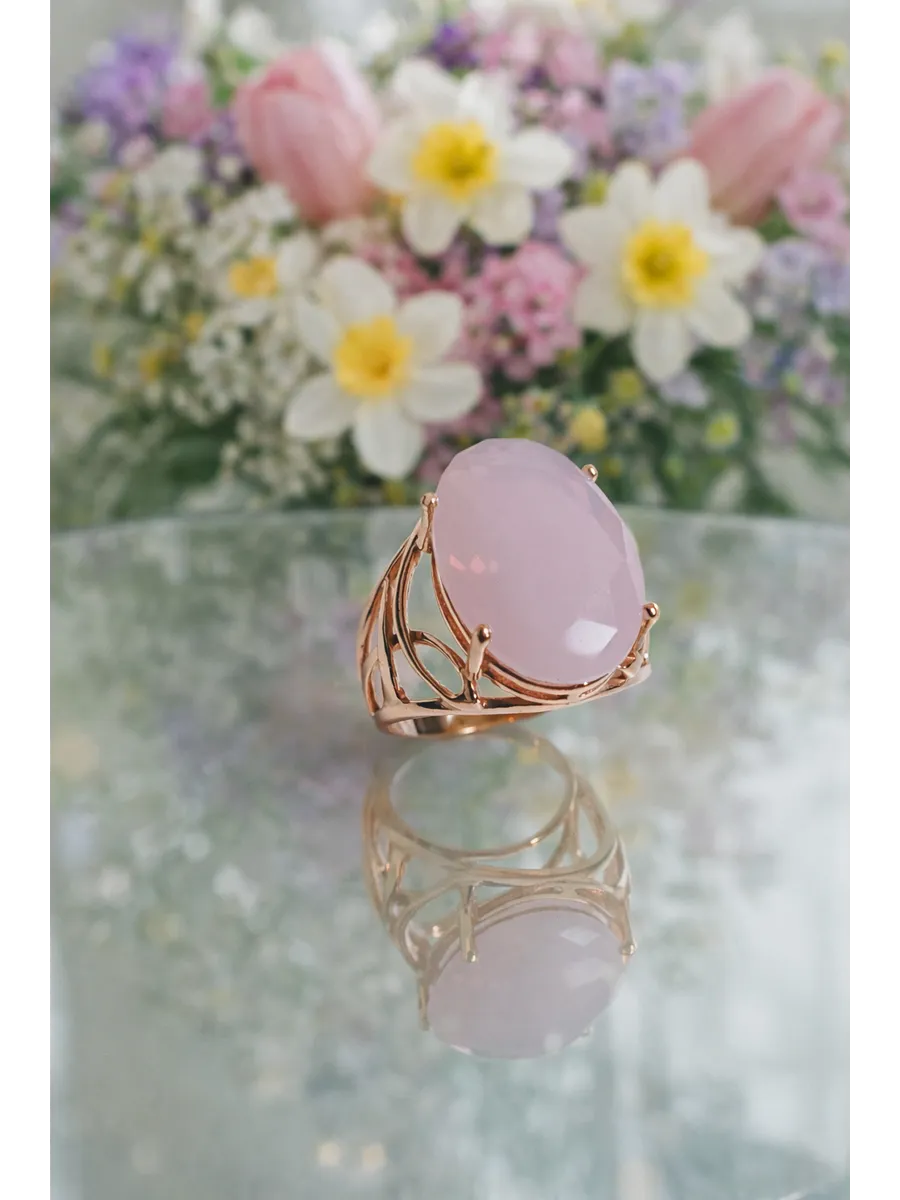 Кольцо бижутерное "Розовая дымка" — изысканное украшение, созданное для настоящих ценителей красоты и стиля. Изделие выполнено из качественного бижутерного сплава с эффектной позолотой, которая придает ему особую элегантность и блеск. В центре перстня расположена крупная вставка из розового кварца размером 13x18 мм, излучающая нежный, словно утренняя дымка, оттенок, способный украсить любой образ.