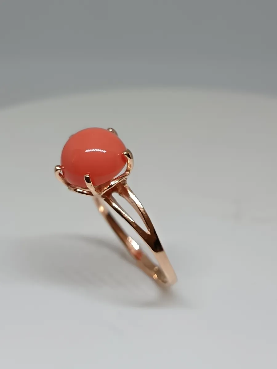 - **Вставка:** Прессованный коралл круглой формы диаметром 10.0 мм, который добавляет кольцу яркий акцент и естественную красоту.