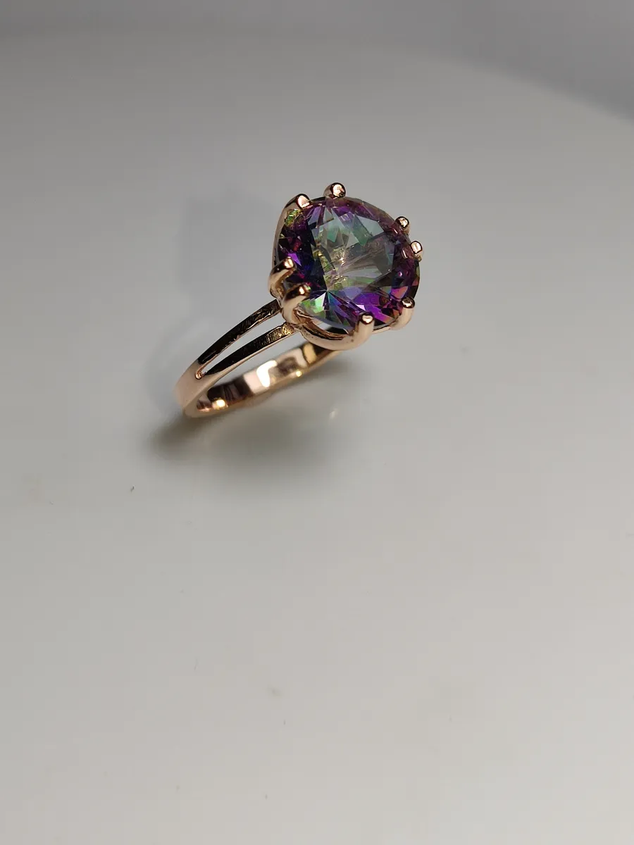 Кольцо украшено великолепным круглым кварцем мистик диаметром 10,0 мм, который переливается всеми цветами радуги, создавая неповторимый эффект. Это украшение станет ярким акцентом в вашем образе и отлично подойдет как для повседневной носки, так и для торжественных мероприятий.