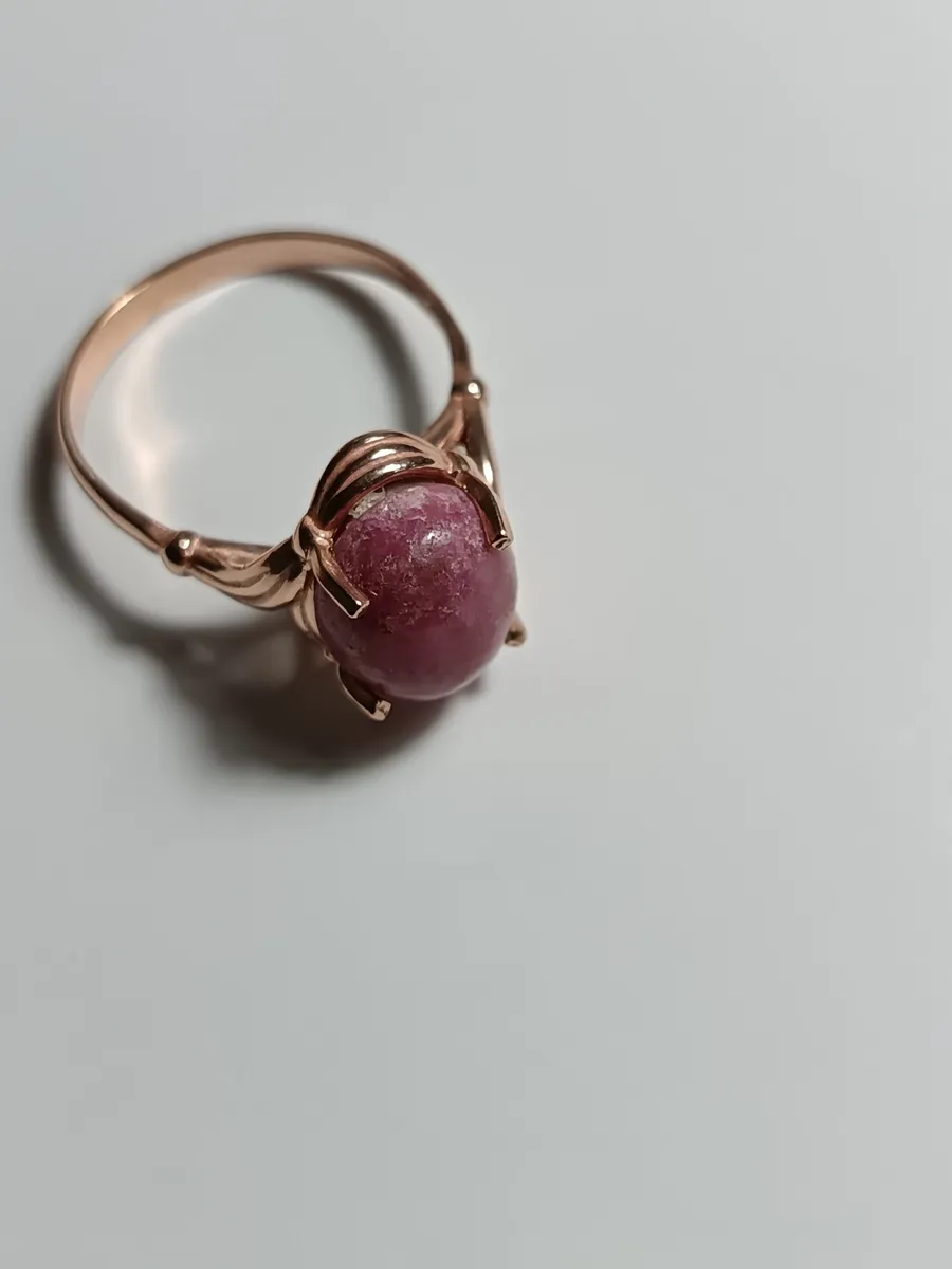 Центральное место в кольце занимает натуральный родонит — камень, известный своими теплыми оттенками от нежно-розового до глубокого малинового. Вставка имеет овальную форму размером 10x12 мм, подчеркивая природную красоту камня и добавляя изделию уникальности.