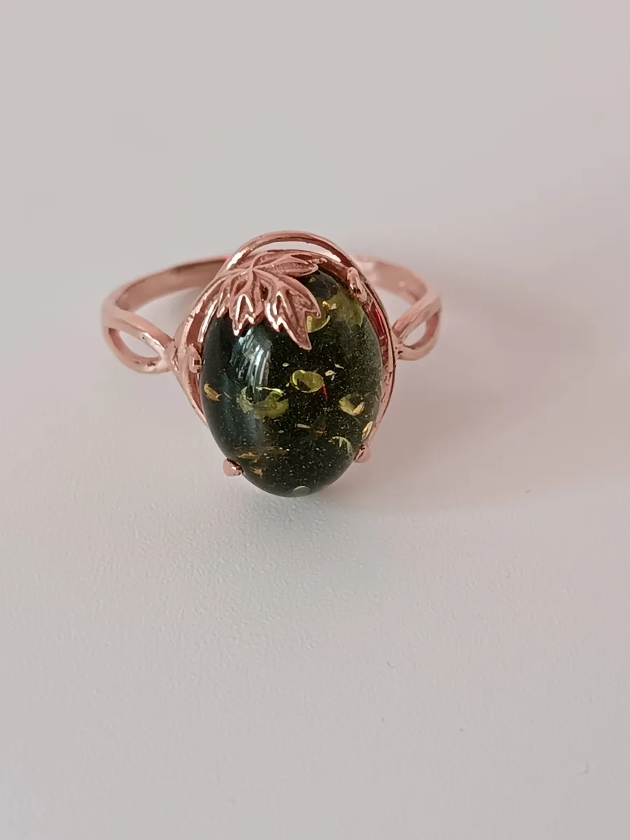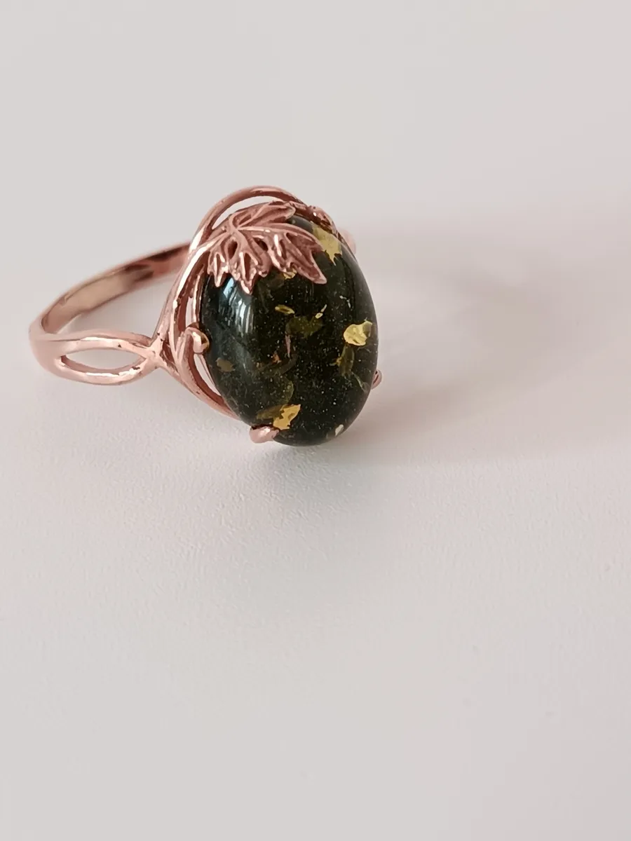 Кольцо бижутерное "Щедрость осени" — изысканное украшение из нашей новой осенней коллекции. Изготовлено из высококачественного бижутерного сплава с роскошной позолотой, оно подчеркивает вашу утонченность и любовь к природе. В центре кольца выделяется уникальный плавленный янтарный камень зеленого цвета в форме овала размером 12x16 мм. Декоративный элемент в виде изящного листа винограда добавляет изделию неповторимую элегантность и ощущение тепла осенних дней. Это кольцо станет идеальным аксессуаром для любого образа, подчеркивая вашу индивидуальность и вкус.