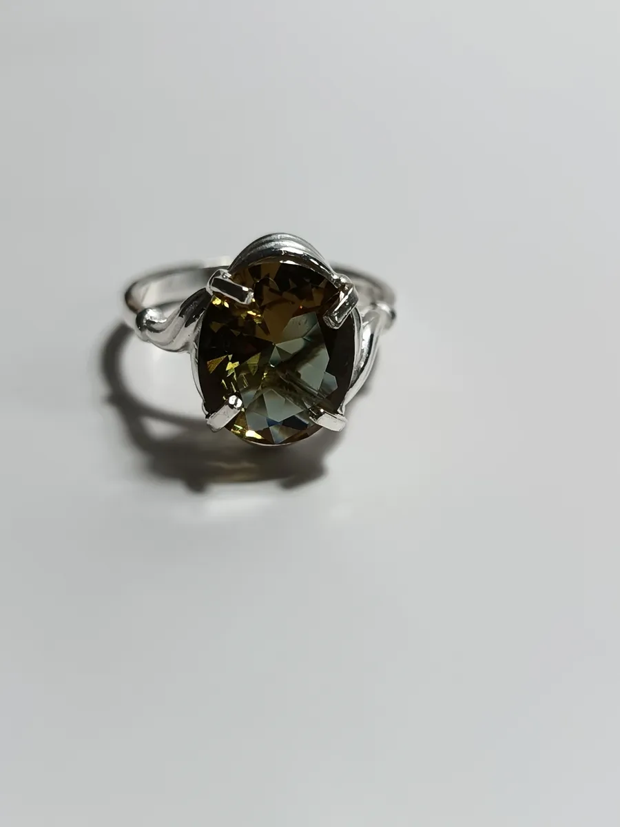 Это изысканное украшение выполнено из высококачественного бижутерного сплава с эффектным серебрением, что добавляет ему особенный блеск. В центре композиции расположена роскошная вставка из синтетического султанита в форме овала размером 10x12 мм, которая словно хранит в себе магические секреты. Средний вес кольца составляет всего 3,3 г, делая его лёгким и удобным для ношения.