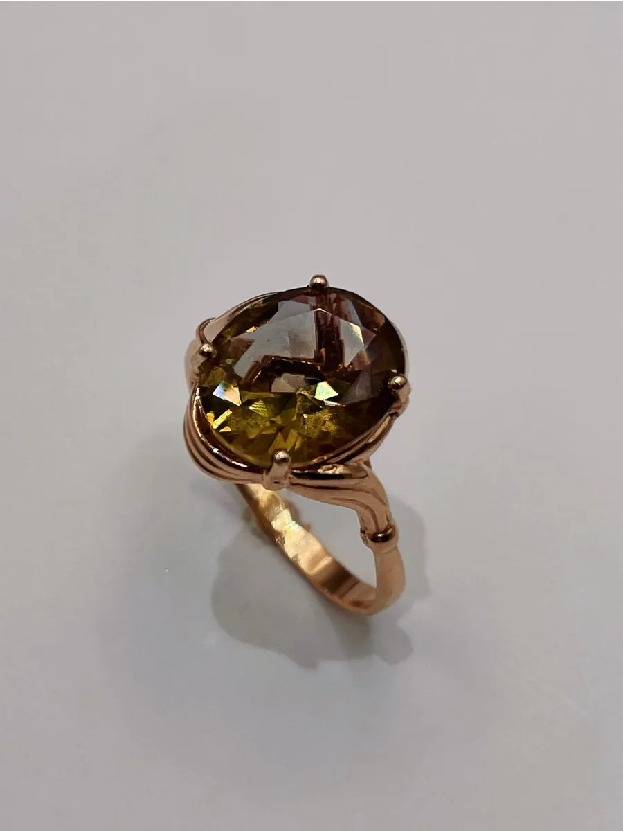 В центре кольца расположена эффектная вставка из синтетического султанита в форме овала размером 10x12 мм. Этот камень, обладая удивительной игрой света и цветовой палитрой, меняет оттенки в зависимости от угла освещения, что делает каждое ваше появление поистине незабываемым.