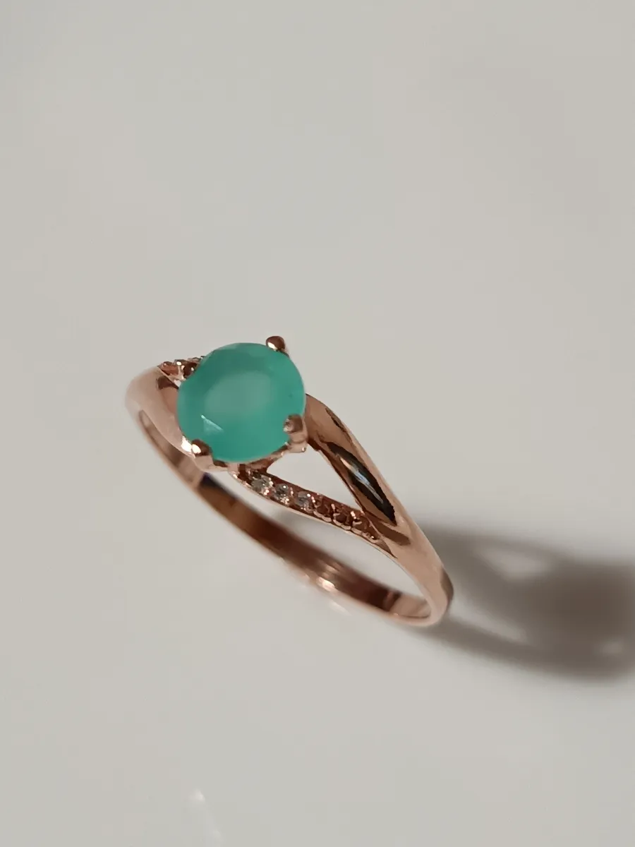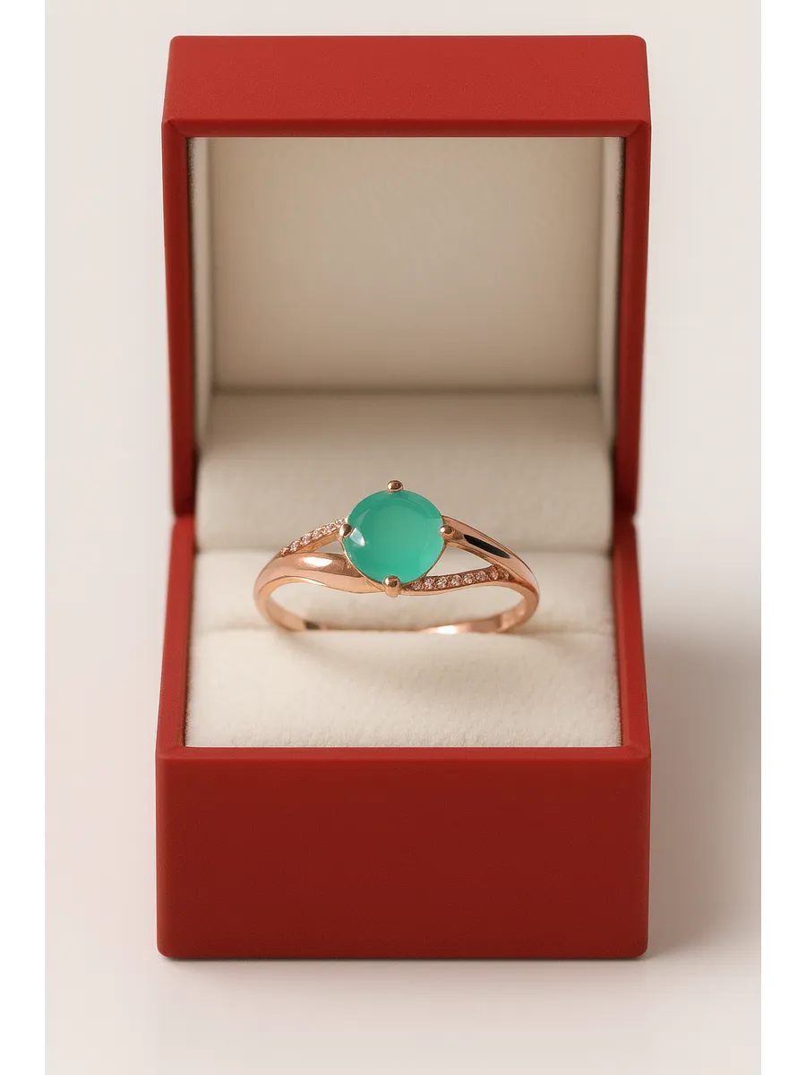 В центре композиции расположен чарующий халцедон – камень, символизирующий спокойствие и умиротворение. Вставка представляет собой идеальный круг диаметром 7,0 мм, гармонично сочетающийся с нежной формой кольца. Халцедон известен своими успокаивающими свойствами, делая это украшение не только стильным аксессуаром, но и талисманом внутреннего равновесия.