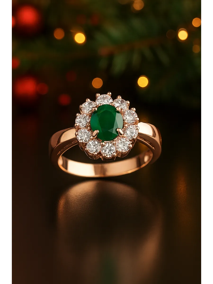 Представляем роскошное кольцо, созданное для настоящих ценителей ювелирного искусства. Изделие выполнено из серебра 925 пробы, дополненного изысканным золотым покрытием 585 пробы, что придает ему особую глубину и блеск. В центре композиции располагается великолепный изумрудный агат овальной формы размером 6x8 мм, окруженный сияющими фианитами, создающими эффект переливающегося света. Средний вес кольца составляет 3,72 грамма, благодаря чему оно не только визуально поражает своей красотой, но и обладает безупречной комфортностью. Это кольцо непременно приковывает взгляды, становясь идеальным дополнением к любому праздничному образу, подчеркивая индивидуальность и стиль его владелицы.