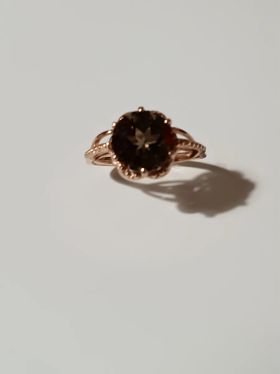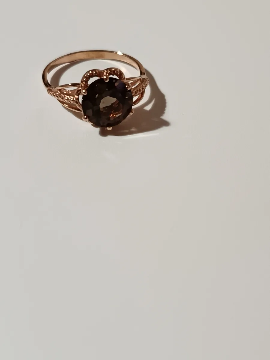 Кольцо с раухтопазом создано для тех, кто ценит изысканность и глубину природных камней. Изделие выполнено из серебра 925 пробы, с роскошным покрытием золота 585 пробы, что придает ему особенный блеск и долговечность. В центре кольца сияет натуральный раухтопаз размером 9,0 мм — камень, известный своей загадочной дымчатостью и способностью усиливать интуицию и мудрость. Раухтопаз, также называемый дымовым топазом, ассоциируется с мистикой и внутренним равновесием, делая это кольцо идеальным аксессуаром для утонченных натур.