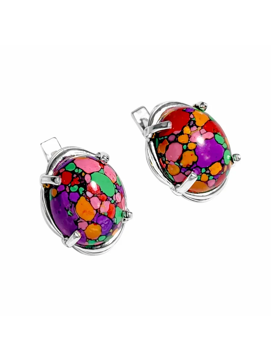 Погрузитесь в волшебство весеннего пробуждения с этими элегантными серьгами! Изделие выполнено из высококачественного бижутерного сплава с эффектным серебрением, что придает изделию изысканный блеск. В центре каждой серьги — уникальная вставка из синтетического оникса "микс" овальной формы (10x12 мм), которая играет оттенками, словно отражение множества весенних цветов.