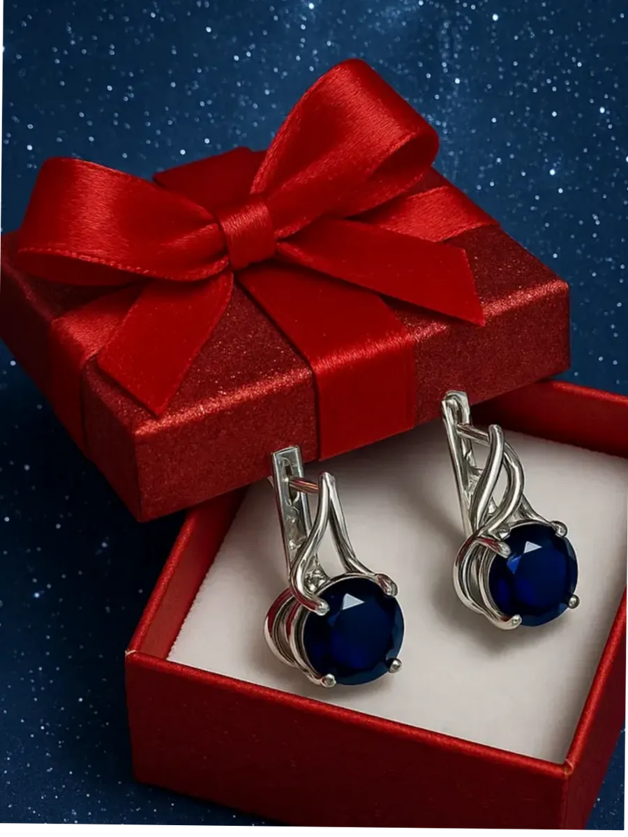 Представляем новинку нашей новогодней коллекции — серьги бижутерные "Магия ночи". Эти изысканные украшения созданы из высококачественного бижутерного сплава с эффектным серебрением, которое придает им особую элегантность и блеск. В центре каждой серьги расположился роскошный кристаллический камень "сапфир" диаметром 10 мм, его сапфировый оттенок переливается, словно волшебная новогодняя ночь с искрящимся снегом и мерцающими звездами на небесном фоне.