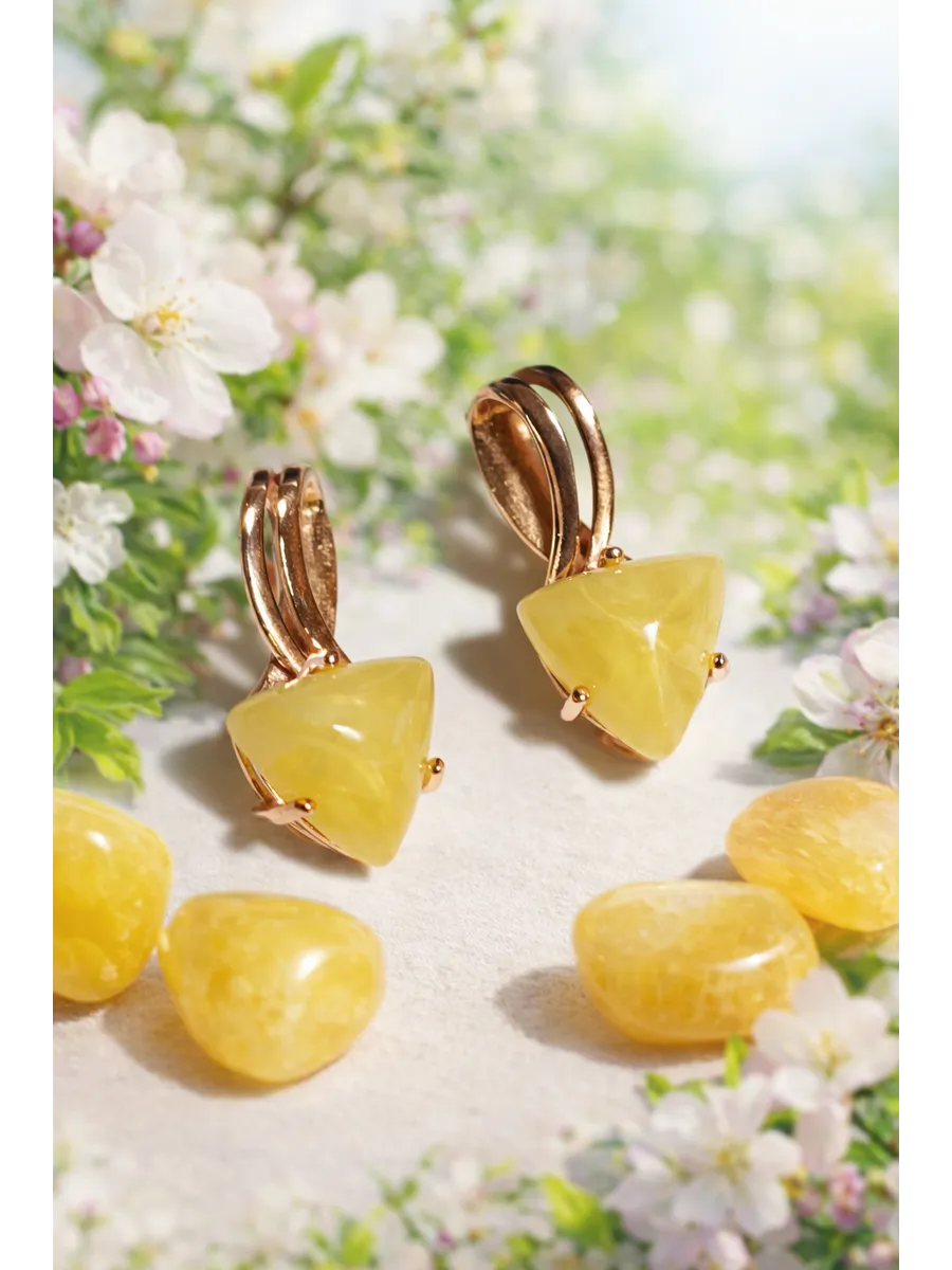 Представляем изысканную новинку — серьги бижутерные "Медовый Лепесток". Эти серьги созданы из качественного бижутерного сплава с позолотой, что придает изделию особую элегантность и долговечность. Центральный акцент — уникальная вставка из янтаря триллион размером 12x12x12 мм теплого медового оттенка, напоминающего о солнечных летних днях. Элегантный английский замок обеспечивает надежность и комфорт ношения.