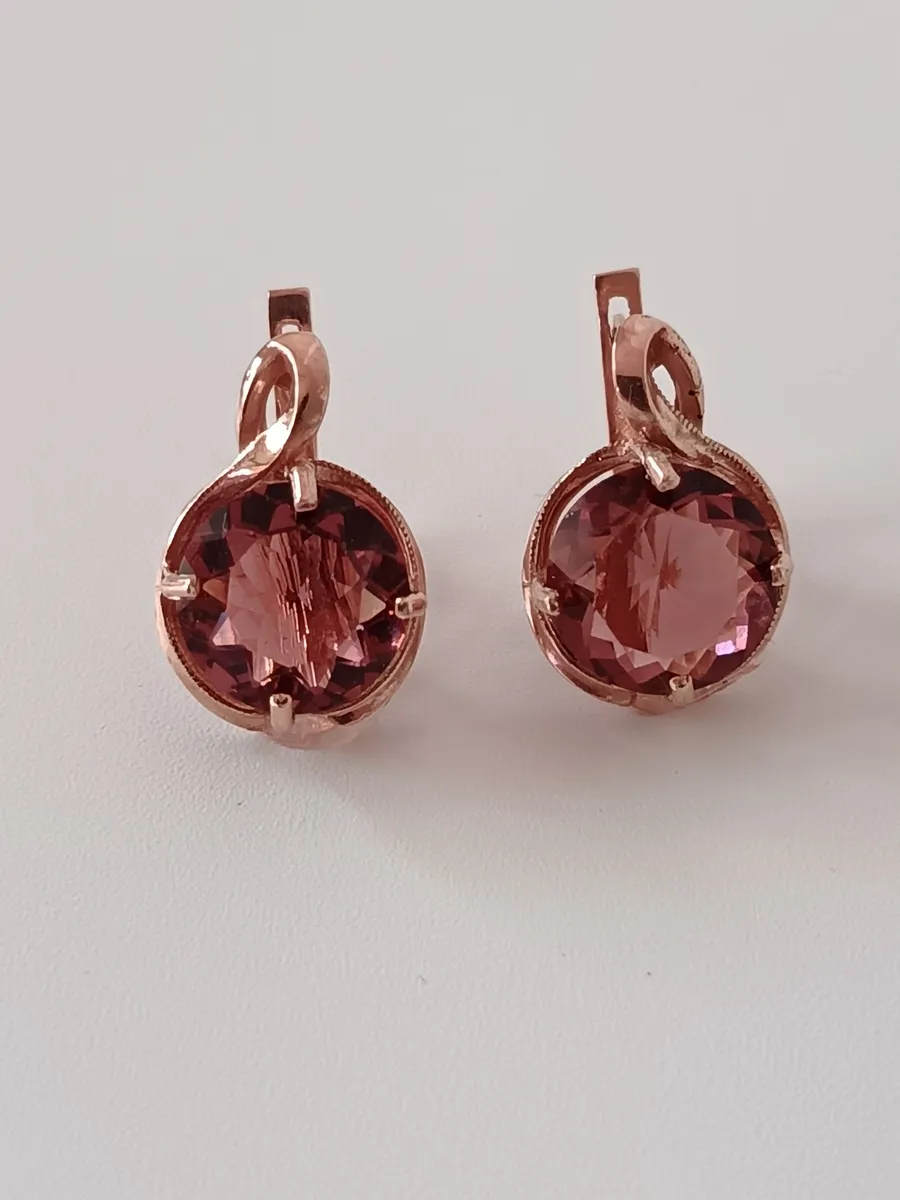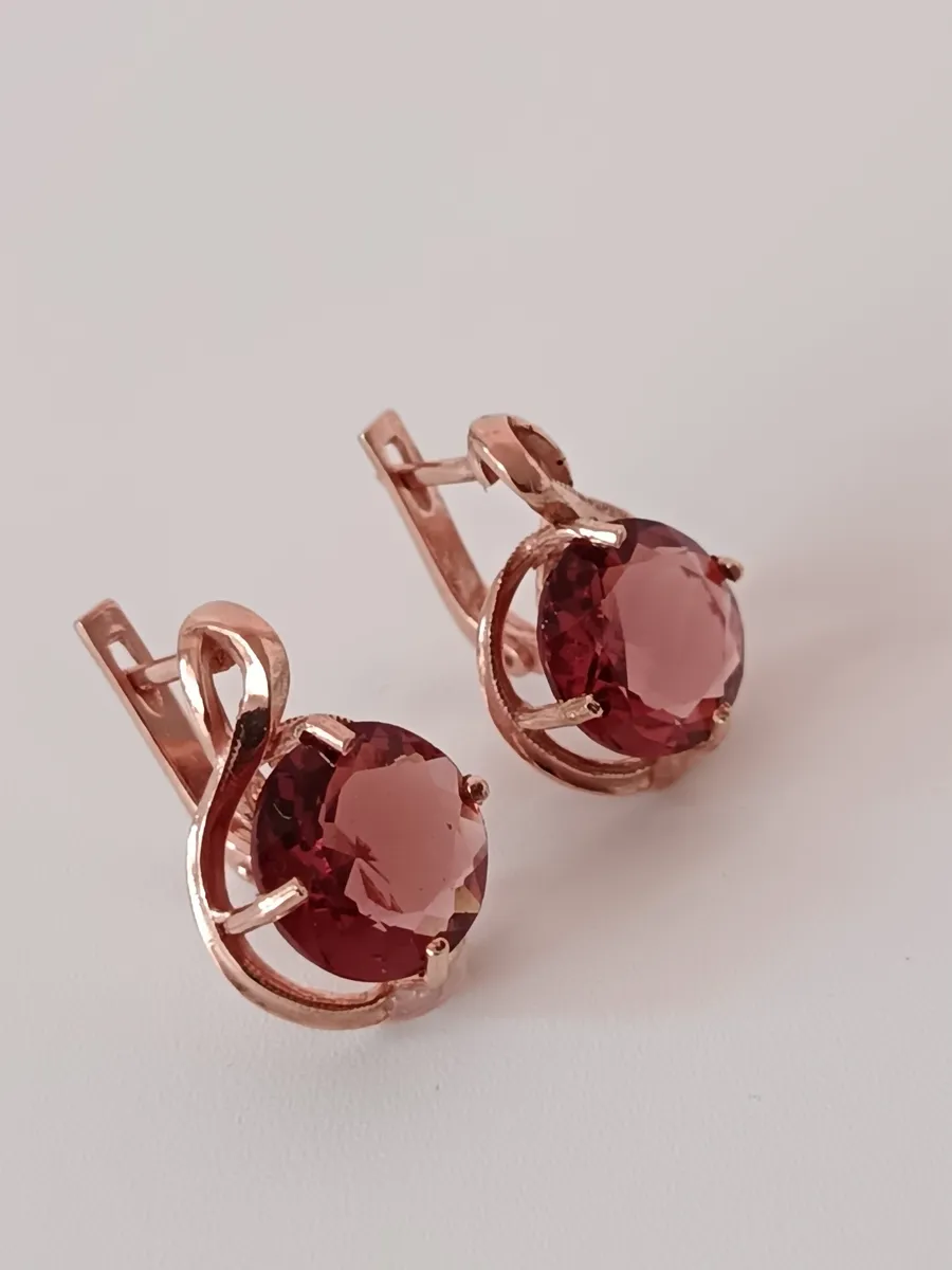 Главным украшением этих серег является крупный синтетический морганит диаметром 12 мм, излучающий теплые оттенки, напоминавшие о первых осенних листьях. Задумчивый розовый цвет камня добавляет загадочности вашему образу.
