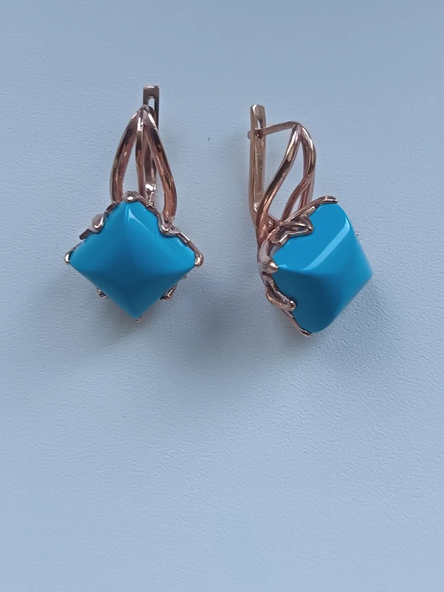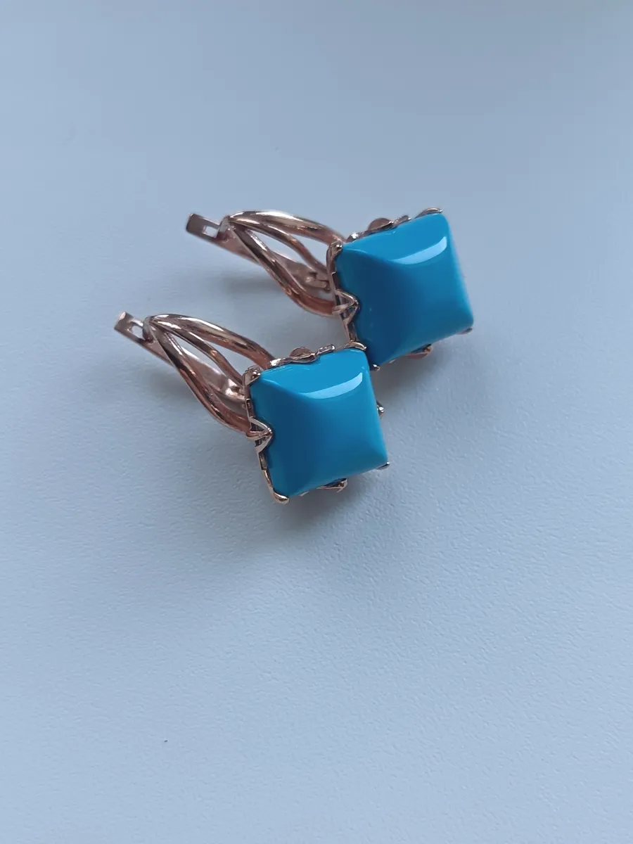 Серьги бижутерные с бирюзой прессованной