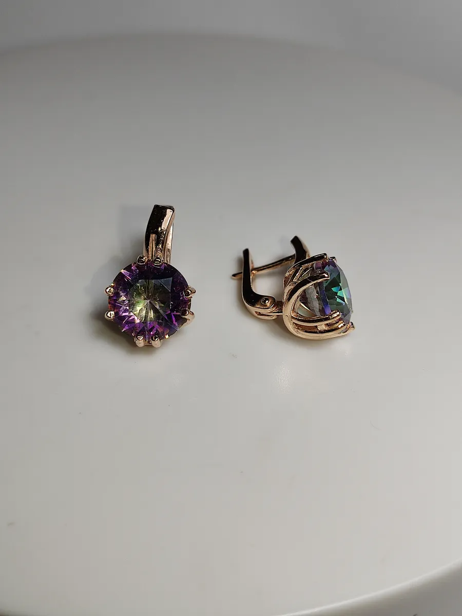 Кварц мистик, благодаря своему уникальному переливу и ярким цветам, привлекает взгляды и создает эффектный акцент в вашем образе. Эти серьги идеально подойдут как для повседневной носки, так и для особых случаев, добавляя вашему стилю шарм и индивидуальность.