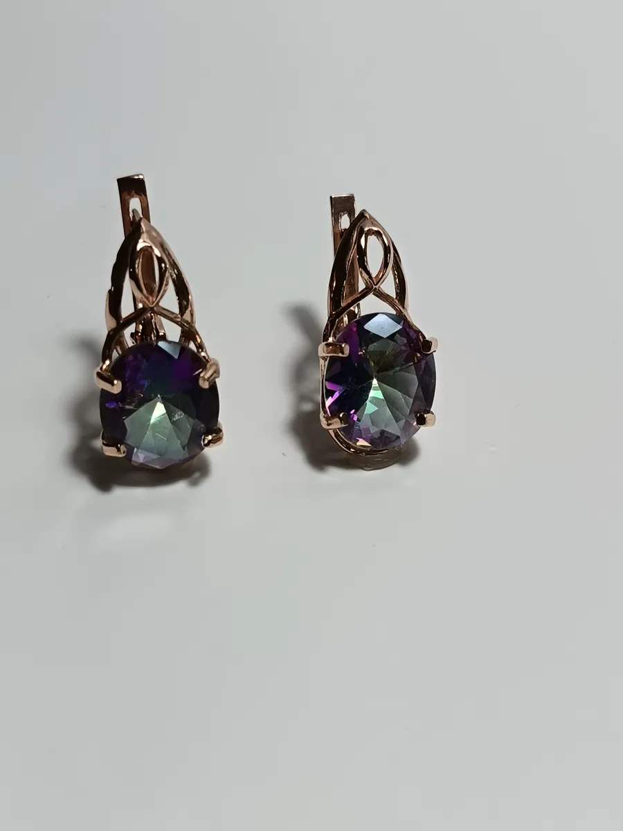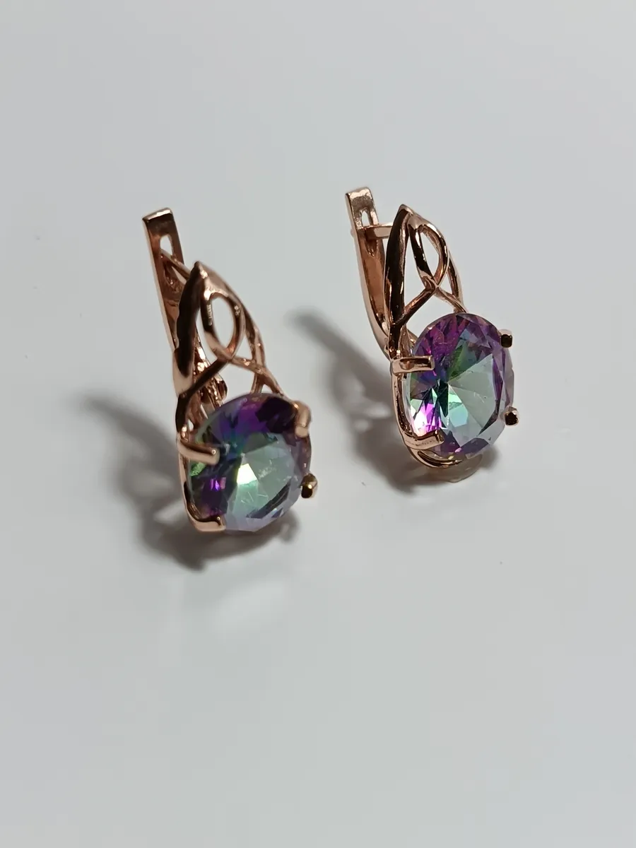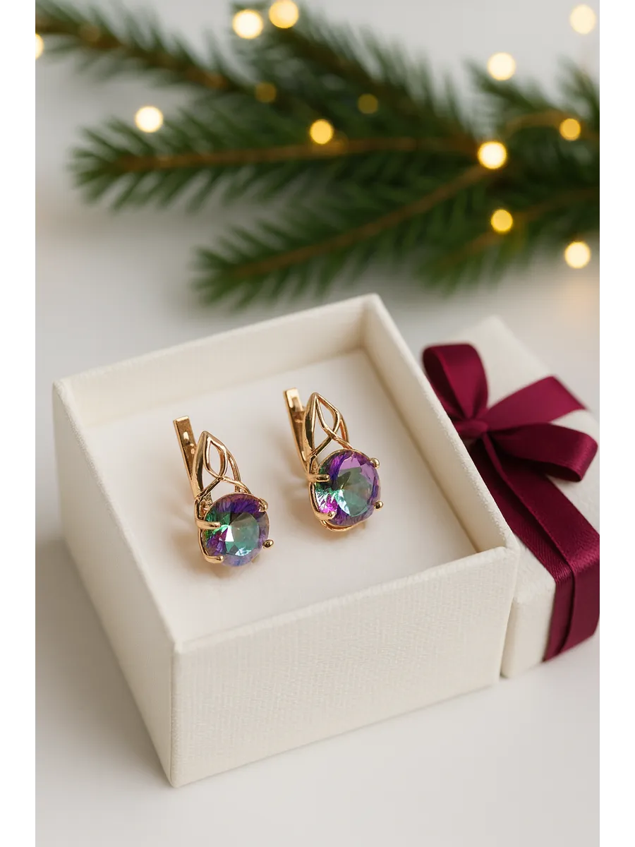 Серьги бижутерные "Северное сияние" — это изысканное украшение, созданное для того, чтобы добавить шарма любому образу. Выполненные из качественного бижутерного сплава с роскошным золочением, они украшены вставкой из кварца мистик овальной формы размером 10x12 мм, которая переливается всеми оттенками, напоминая таинственное северное сияние. Элегантный английский замок обеспечивает надежную фиксацию, а общая длина серьги составляет 20 мм, с глубиной швензы 8 мм. Вес каждой пары — всего лишь 4,5 грамма, что делает их комфортными для ношения в течение всего дня. Эти серьги идеально подойдут как для торжественных мероприятий, так и для повседневного стиля, добавляя изысканный акцент вашему гардеробу.