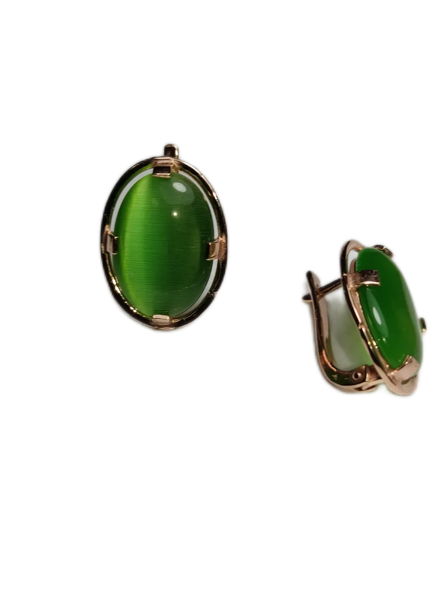 Погрузитесь в мир утонченной элегантности с нашими бижутерными серьгами, украшенными вставкой из кошачьего глаза в изысканном оттенке зеленого яблока. Эти серьги выполнены из качественного бижутерного сплава с позолотой, что придает им роскошный вид и долговечность.