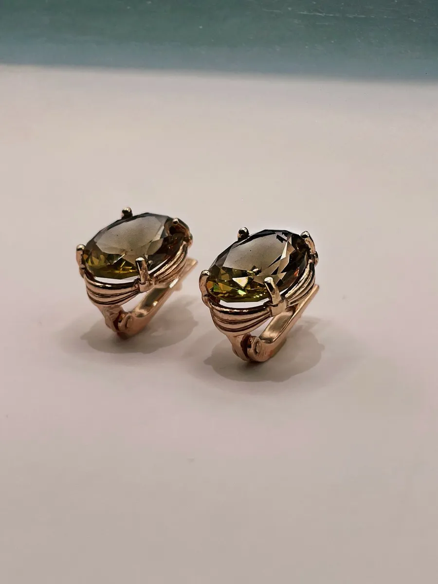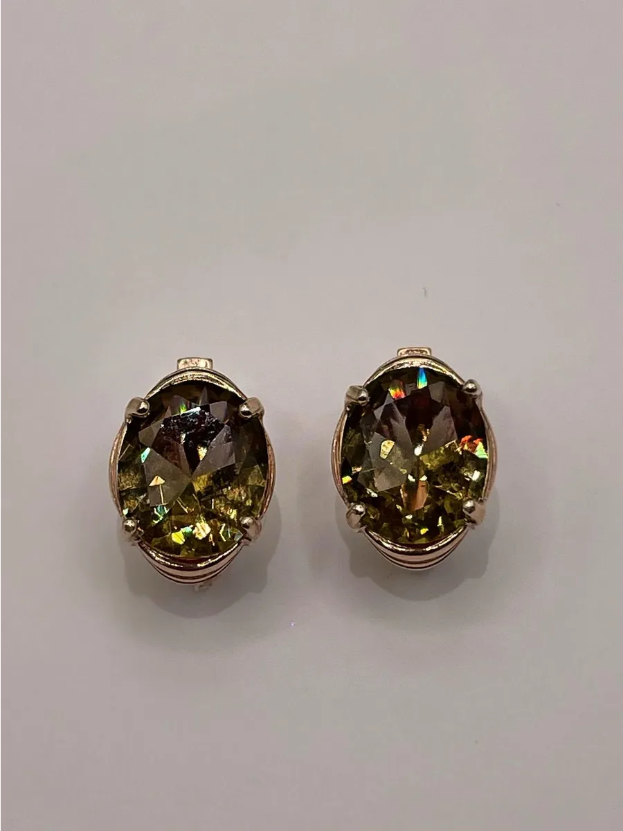Каждая серьга украшена синтетическим султанитом в форме овала размером 10x12 мм, который играет яркими оттенками и привлекает внимание своим уникальным блеском. Средний вес изделия составляет 4,74 грамма, что делает их комфортными для ношения в течение всего дня.