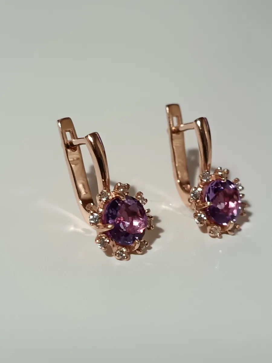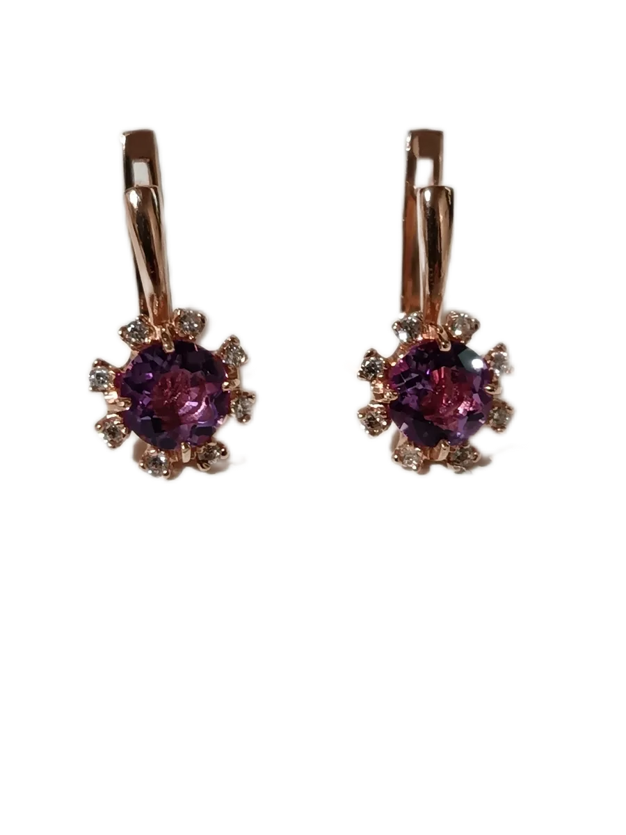 Эти изысканные серьги сочетают в себе элегантность и магию природных камней. Выполненные из серебра 925 пробы, они украшены роскошным аметистом диаметром 7 мм, который излучает глубокие фиолетовые оттенки, символизирующие мудрость и спокойствие. Покрытие золотом 585 пробы придает изделию особенный блеск и долговечность, а искрящиеся фианиты усиливают эффект роскоши. Элегантный английский замок обеспечивает безопасность и комфорт ношения. Длина серьги составляет 20 мм с глубиной швензы 9 мм, что делает их идеально подходящими для любого уха. Аметист, известный как камень ясности и интуиции, добавляет этим серьгам дополнительный шарм, делая их идеальным подарком или элементом вашего личного гардероба.