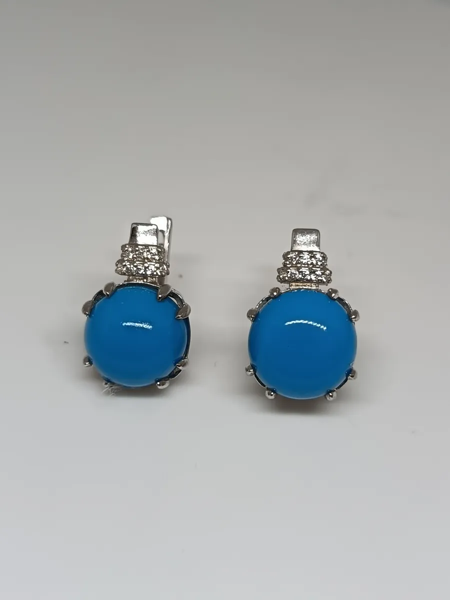 Представляем вам изысканные серьги из серебра 925 пробы с родированием, которые станут великолепным дополнением к вашему образу. Эти серьги украшены прессованной бирюзой в форме круга диаметром 10 мм, придающей изделию яркий и свежий акцент. Элегантные фианиты добавляют блеска и изысканности, подчеркивая красоту бирюзового камня.