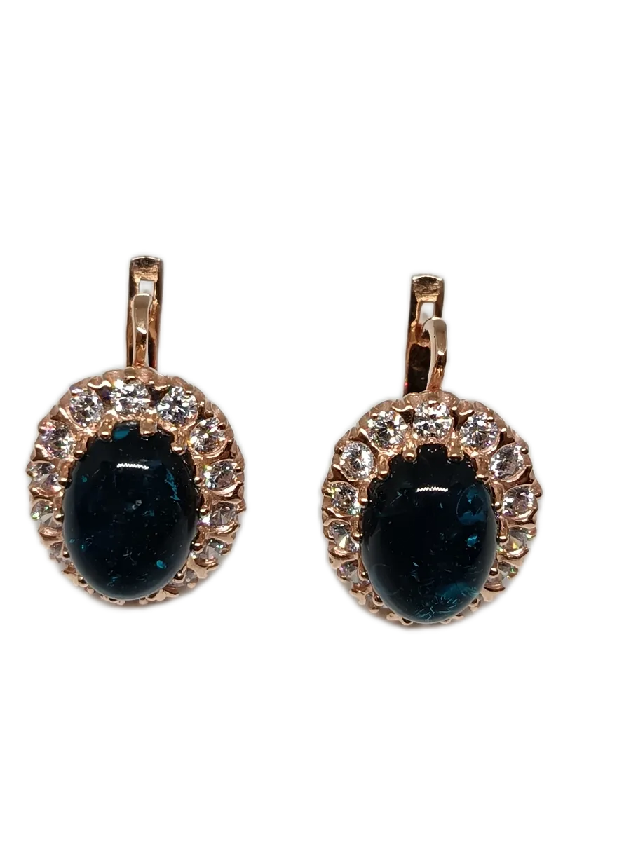 Представляем вам изысканные серьги из серебра 925 пробы, которые станут великолепным дополнением к вашему образу. Эти серьги покрыты золотом 585 пробы, что придает им роскошный блеск и долговечность. Центральным элементом украшения является овальная вставка из синего янтаря размером 10x14 мм, который привлекает внимание своим уникальным цветом и текстурой.